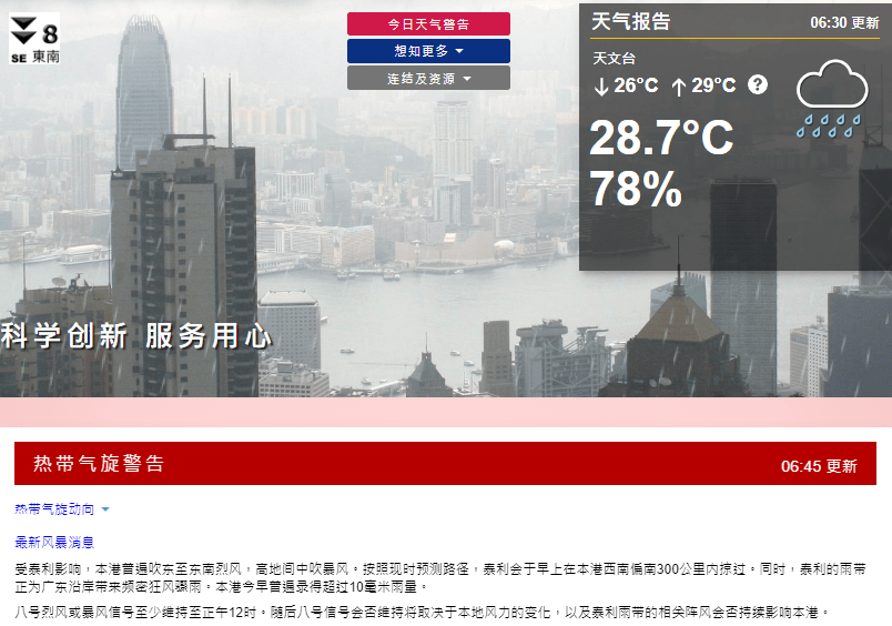 图注:香港天文台维持八号热带气旋警告信号