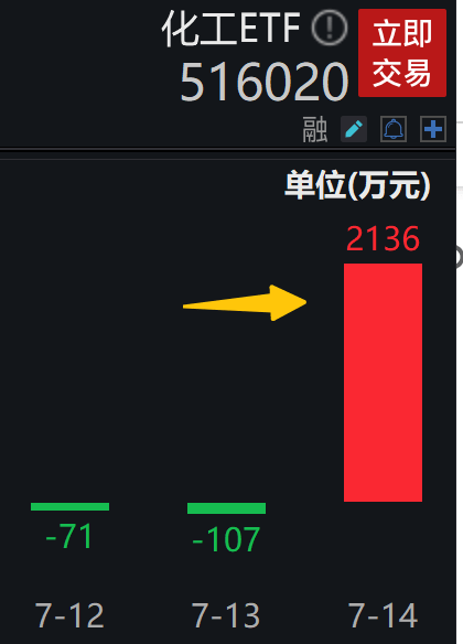 跟踪这一指数的场内代表ETF——化工ETF(516020)7月14日单日实现净申购2136万元。作为市场资金风向标,化工ETF(516020)资金涌入量的变化,一定程度上反映了市场资金的后市预期正转向乐观。