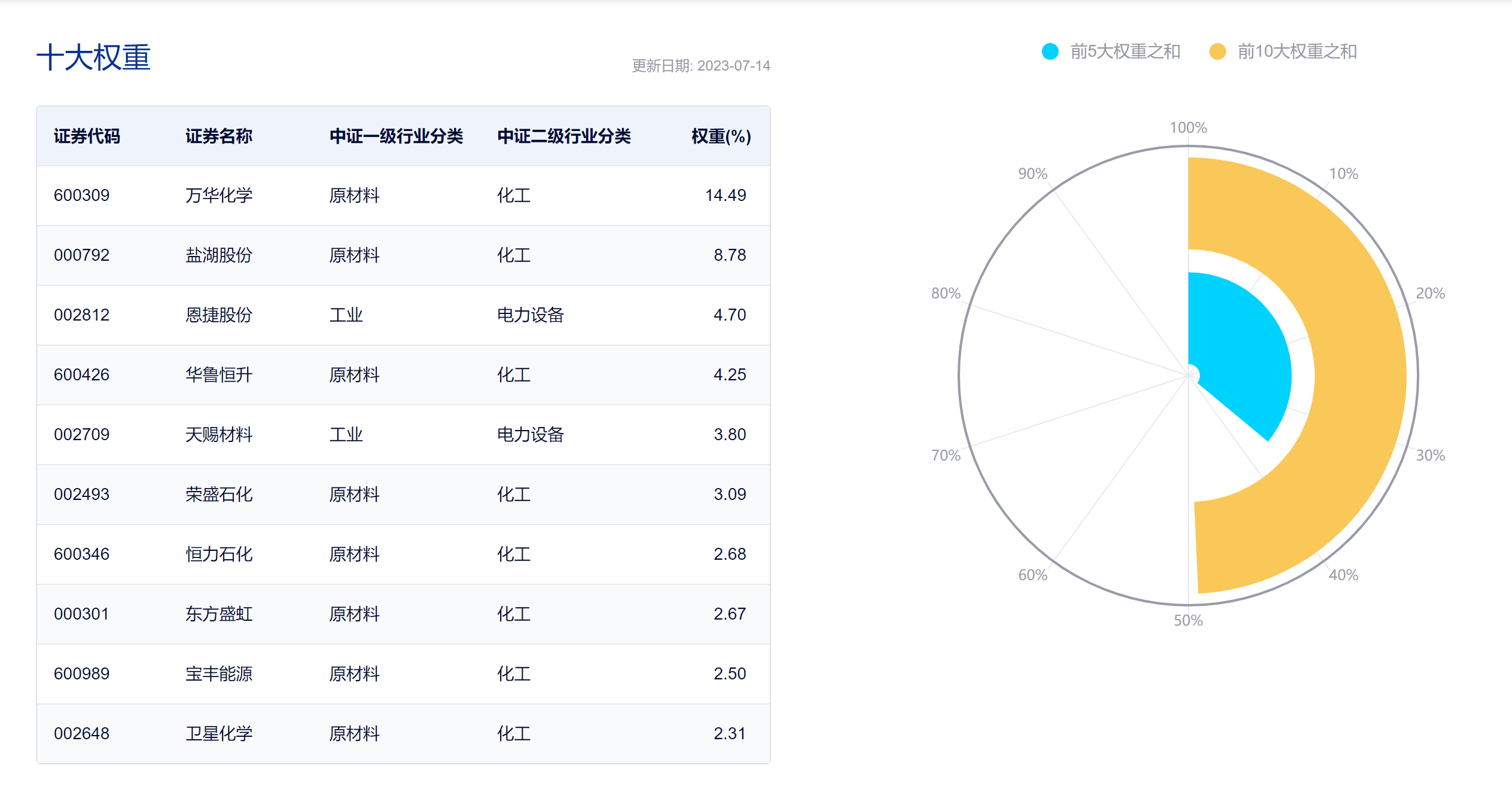 风险提示:化工ETF被动跟踪中证细分化工产业主题指数,该指数基日为2004.12.31,发布日期为2012.4.11,指数成份股构成根据该指数编制规则适时调整。文中指数成份股仅作展示,个股描述不作为任何形式的投资建议,也不代表管理人旗下任何基金的持仓信息和交易动向。基金管理人评估的本基金风险等级为R3-中风险,适合适当性评级C3以上投资者。任何在本文出现的信息(包括但不限于个股、评论、预测、图表、指标、理论、任何形式的表述等)均只作为参考,投资人须对任何自主决定的投资行为负责。另,本文中的任何观点、分析及预测不构成对阅读者任何形式的投资建议,亦不对因使用本文内容所引发的直接或间接损失负任何责任。基金投资有风险,基金的过往业绩并不代表其未来表现,基金管理人管理的其他基金的业绩并不构成基金业绩表现的保证,基金投资需谨慎。