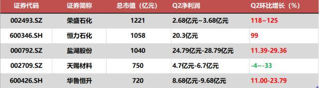 截至7月14日,细分化工指数前10权重股有5只披露了半年业绩预告,除了天赐材料二季度净利环比降低,荣盛石化、恒力石化、盐湖股份、华鲁恒升环比净利改善均较为明显。其中荣盛石化二季度净利扭亏为盈,环比增幅高达118%-125%,恒力石化二季度环比增幅也在99%左右。
