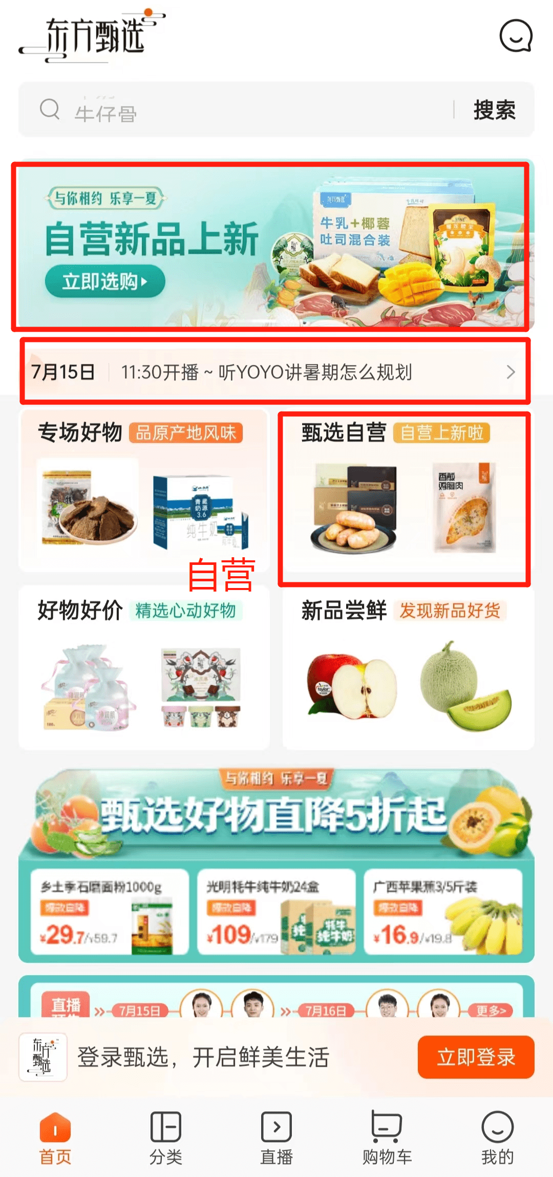 甄选自营:业务已经从最初的第三方商品供应,看出来转向自营,肯定是跑通了自营业务的闭环,并且有了主动权,能更好的把控源头和中间环节,有定价权,利润空间会更大。