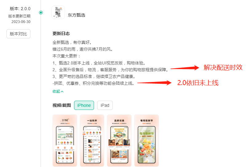 抛开功能bug不谈,就业务而言,商品质量肯定是没毛病的,价格不具备竞争力的同时,供应链的问题是直接导致用户体验的首要因素,如果连时效性都有了问题,靠IP硬抗,草草收场只是时间问题,东方甄选的客户画像绝对不是无脑冲群体,稍后打开app看看2.0+版本中能否让品质客户感觉到服务的存在。