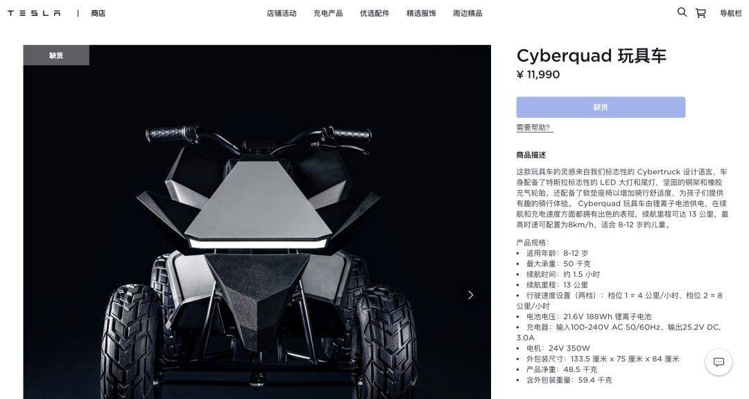 【特斯拉玩具车二手价大跳水,曾被加价到10万】7月14日上午10点,特斯拉中国官网正式开售Cyberquad玩具车,该款玩具车售价为11990元。记者发现,特斯拉中国官网显示,Cyberquad玩具车依旧处于“缺货”状态。但在二手平台上,Cyberquad玩具车价格已经出现大面积降价。二手平台最高报价也在3万元以内,实际售价多在1.2到1.4万元左右。当然,国内这波炒作还不是最夸张的,此前Cyberquad在海外上市的时候,一度被炒作到了10万元,是原价的10倍左右。(证券时报)
