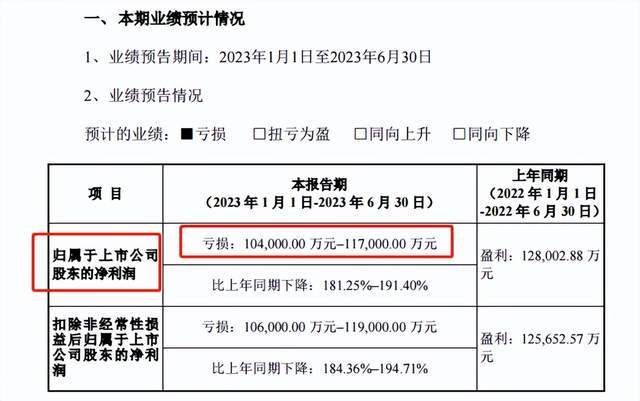 德方纳米最新公告称,预计上半年归属净利润亏损10.4亿元~11.7亿元,同比由盈转亏。