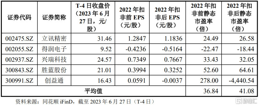 (可比上市公司估值水平,图片来源:招股书)