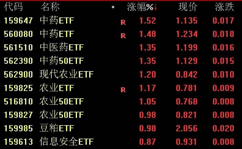 原标题:大盘全天震荡调整,中药、农业相关ETF涨超1%,能源化工ETF跌近3%