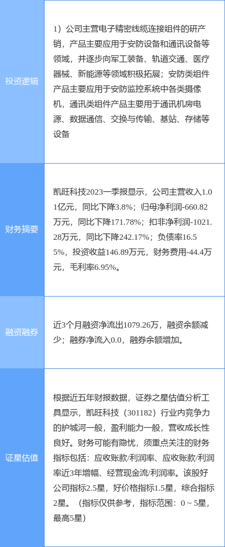 凯旺科技涨停收盘,收盘价28.76元。该股于9点39分涨停,1次打开涨停,截止收盘封单资金为2128.25万元,占其流通市值2.06%。