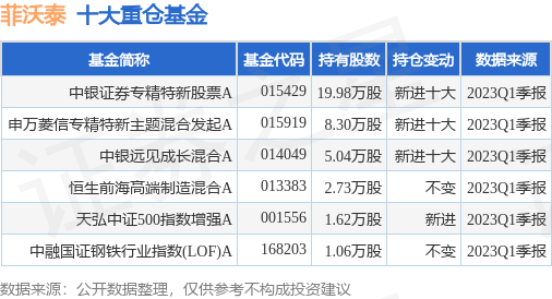 根据2023Q1季报公募基金重仓股数据,重仓该股的公募基金共6家,其中持有数量最多的公募基金为中银证券专精特新股票A。中银证券专精特新股票A目前规模为0.92亿元,最新净值1.001(7月14日),较上一交易日上涨1.15%。该公募基金现任基金经理为宋方云。宋方云在任的基金产品包括:中银证券均衡成长混合A,管理时间为2022年12月24日至今,期间收益率为15.1%;