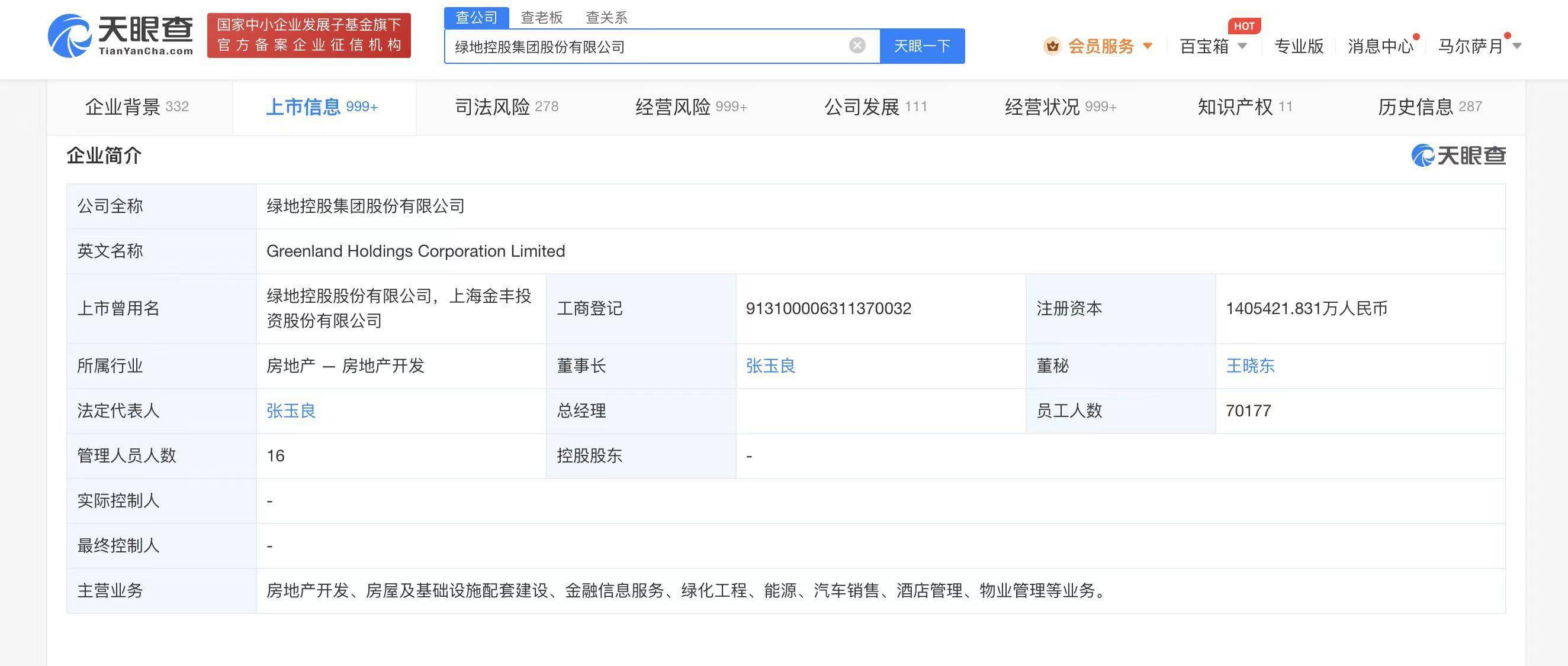 绿地控股集团股份有限公司成立于1992年7月,法定代表人为张玉良,主营业务为房地产开发、房屋及基础设施配套建设、金融信息服务、绿化工程、能源、汽车销售、酒店管理、物业管理等业务。