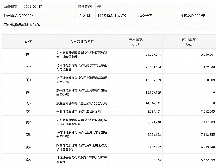 原标题:龙虎榜丨林州重机今日涨停,上榜营业部席位合计净买入1.06亿元