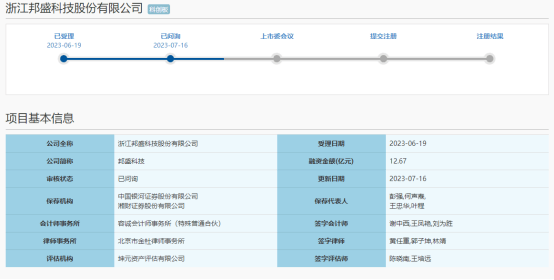 7月16日,浙江邦盛科技股份有限公司(下称“邦盛科技”)科创板IPO已问询,本次拟募资12.67亿元。