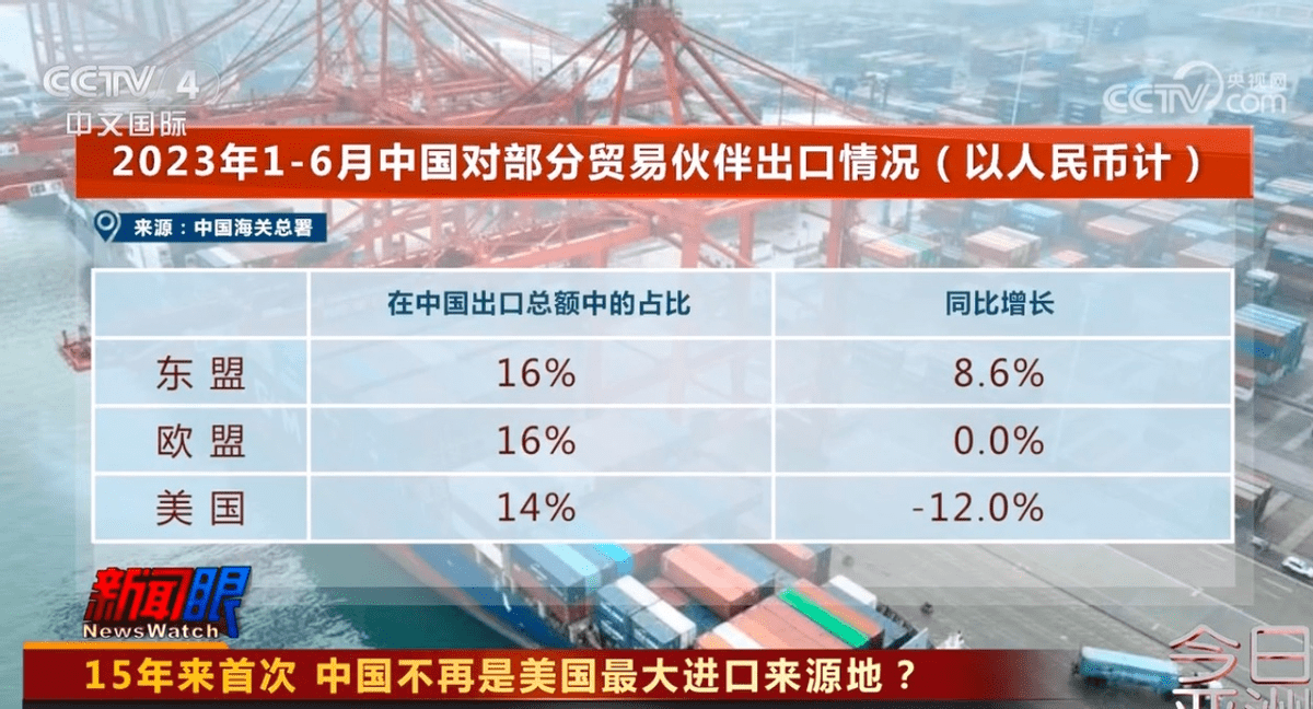 据美国媒体报道,中国在成为美国第一大商品进口国15年来,首次失去了这个位置。据美国商务部贸易统计数据显示,中国2023年1到5月份的对美出口为1686亿美元,同比下降24%,占美国进口总量的13%;与此同时,美国从墨西哥和加拿大的进口总量不断攀升,先后超越了中国,目前墨西哥是美国第一大商品进口国,加拿大是第二大,而中国只排第三位。