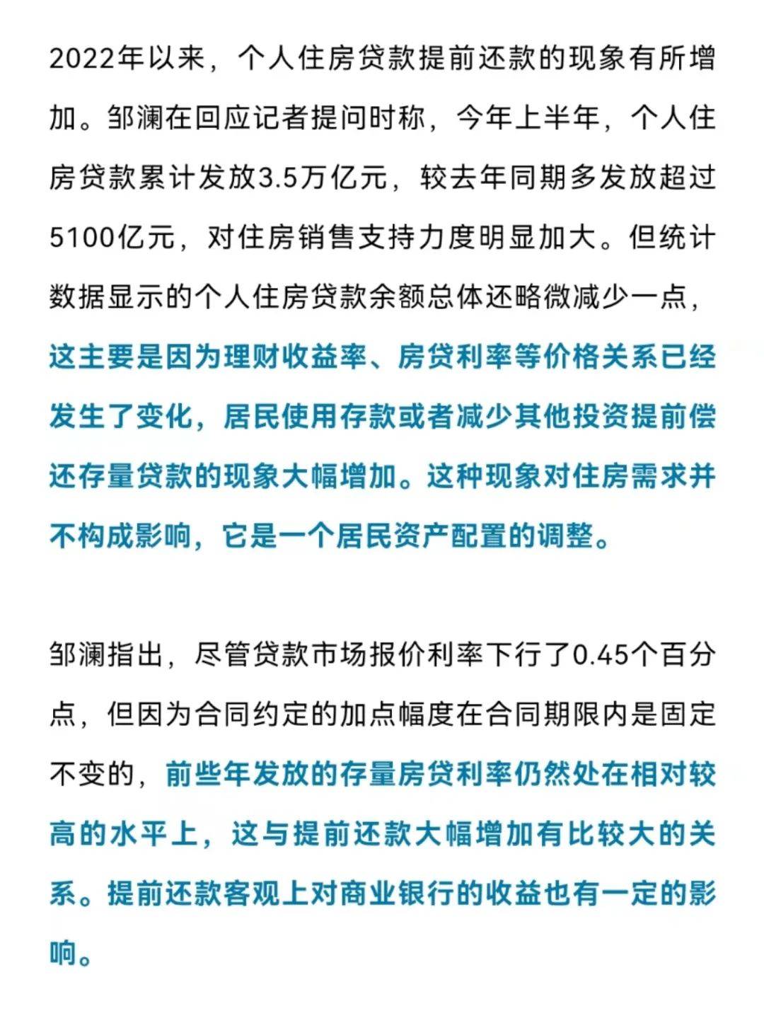 7月14日,中国人民银行货币政策司司长邹澜在国新办举行的新闻发布会上表示,“按照市场化、法治化原则,支持和鼓励商业银行与借款人自主协商变更合同约定,或者是新发放贷款置换原来的存量贷款”。