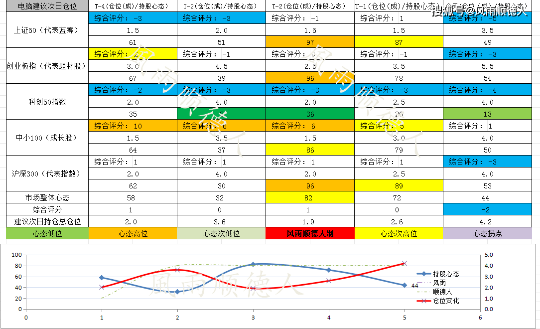 2、仓位参考方面:市场整体心态44,属于中位心态,电脑建议明天【备注:不是今天】总仓位维持4.2成。