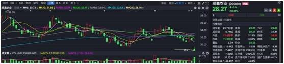 此外,顺鑫农业跌停,公司上半年业绩亏损5500万至1.1亿元,亏损原因来自两方面,一是地产项目拖累整体业绩,二是生猪平均价格低位运行,公司生猪养殖与屠宰业务两端承压,猪肉产业亏损较大。
