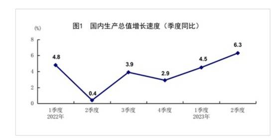 分季度看,一季度国内生产总值同比增长4.5%,二季度增长6.3%。