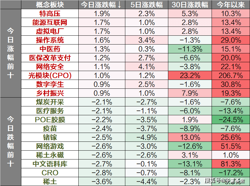 概念主题方面,特高压、能源互联网、虚拟电厂板块领涨,稀土、CRO、中文语料库板块下跌。