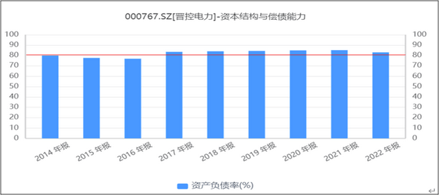 财报显示:2022年,晋控电力利息费用约19亿,占营业收入比例约9.4%。苦心经营一年,仅7.15%的毛利率,竟还不够支付利息。高额的利息费用,直接导致晋控电力2022年巨亏8亿。