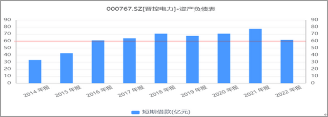 数据显示:最近几年,晋控电力短期借款余额均在60亿以上;长期借款余额更是一路狂飙,2022年末余额高达182.28亿元。