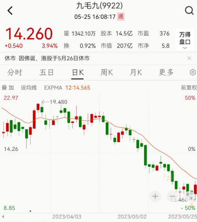 近期持续走跌的餐饮股九毛九底部逆市反弹。