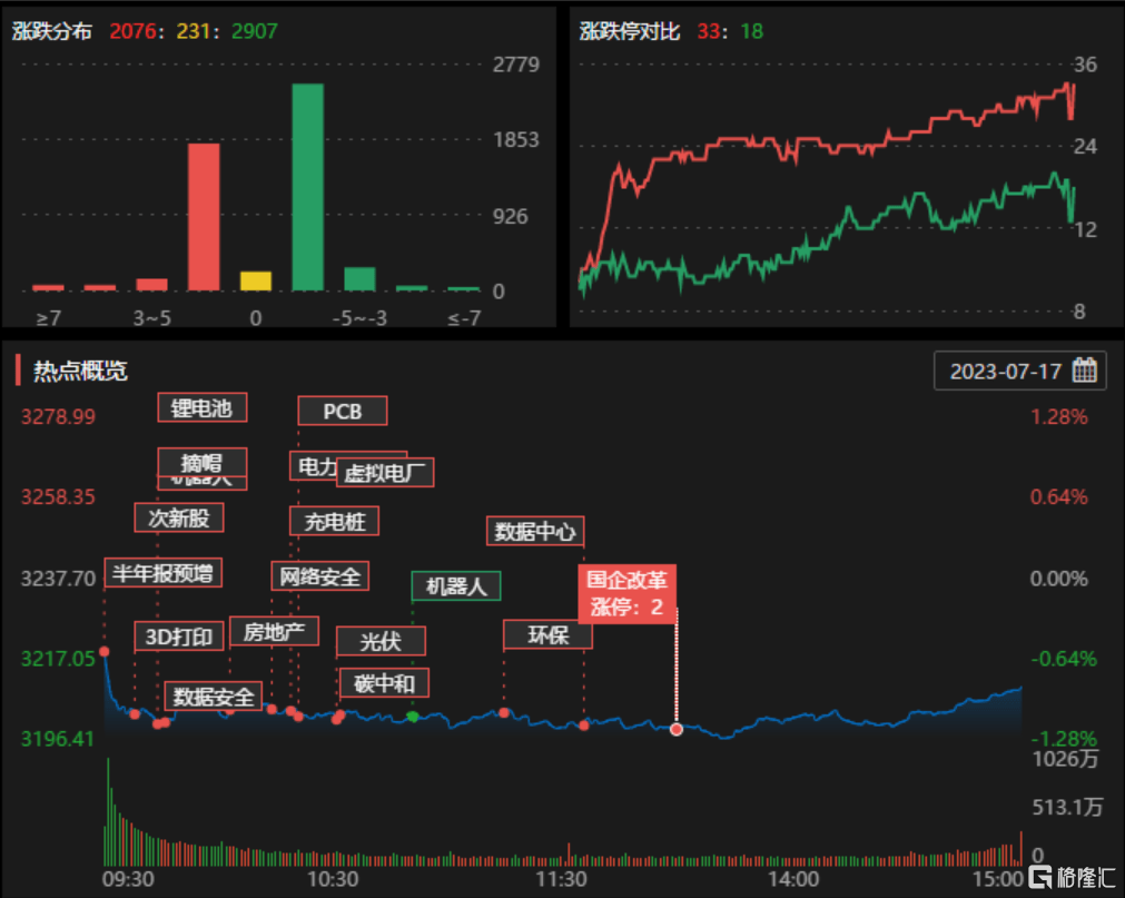 7月17日,两市个股跌多涨少,2076只股票上涨,2907只股票下跌。两市成交额8026亿元,受台风天气影响,北上资金全天暂停交易。