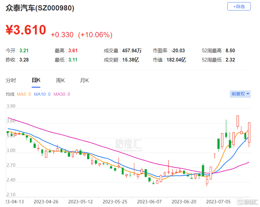 4、申请撤销风险警示获交易所批准,证券简称变更为众泰汽车,简称变更公告日为2022-11-03。