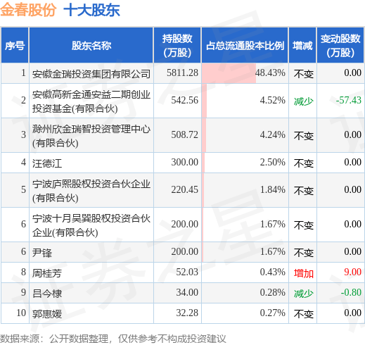 根据金春股份2023年一季报公布的十大股东详情如下: