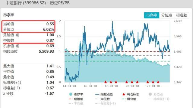 值得注意的是,截至7月17日,银行板块(中证银行指数)最新市净率PB为0.55倍,仅位于近10年6%左右的时间区间。