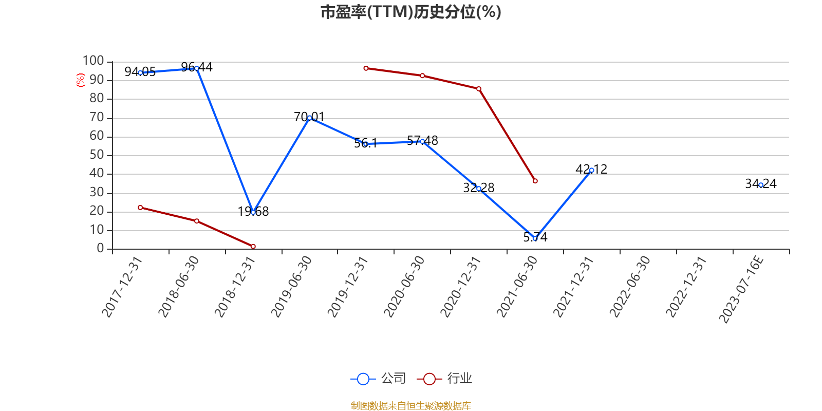 市盈率为负时,不显示当期分位数,会导致折线图中断。