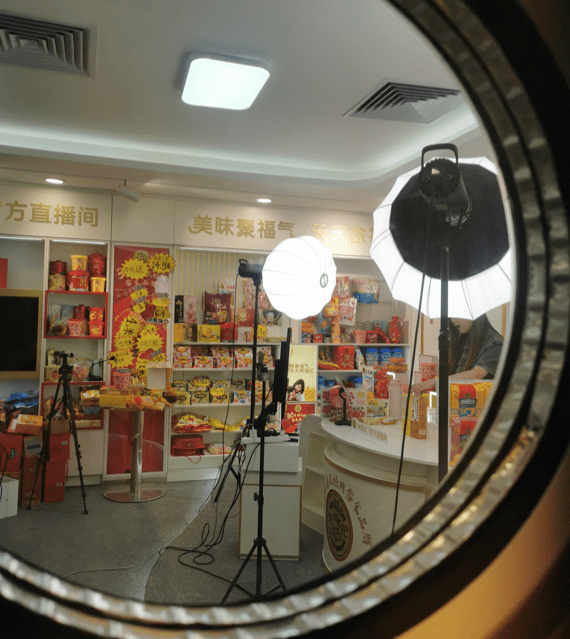 伯虎财经在徐福记参观时,正值其直播间扩张的装修期间。电梯出来旁边摆放着招聘主播的广告牌,径直往前走是直播间,里面摆满了各种零食产品,主播们正在热情地直播讲解。