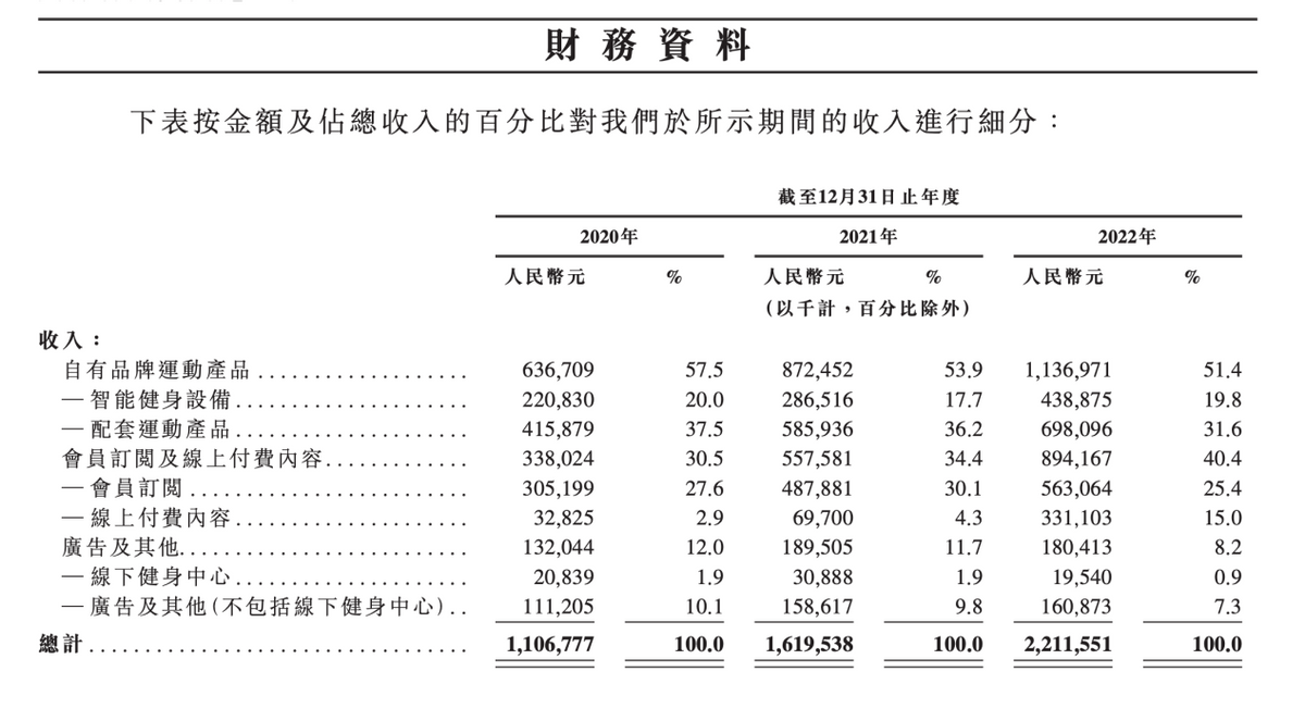 招股书显示,2022年,Keep品牌运动产品卖了11.3亿。线上付费内容仅仅卖了3.3亿。