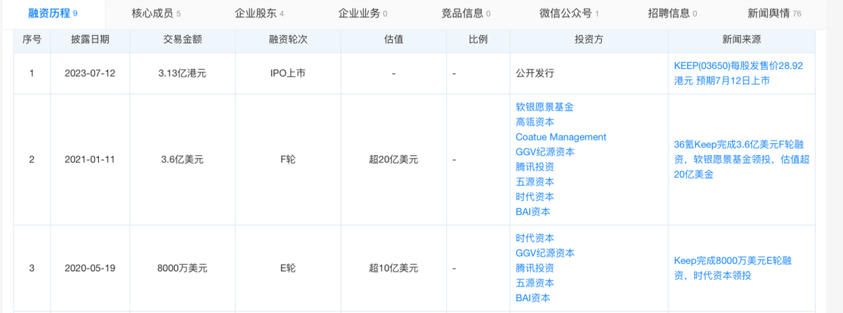 此时上市,也许并非最好时机,三年累计亏损16亿之后,Keep可能找不到上市之外更好的选择。天眼查APP显示,不完全统计,上市前Keep已经完成F轮融资。