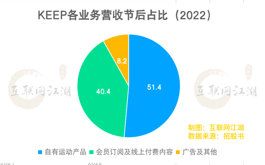 营收结构上,2022年,三大业务营收收入占比分别为51.4%、40.4%以及8.2%换言之,Keep的大分部营收是靠卖会员、卖健身课以及销售自家的配套产品。