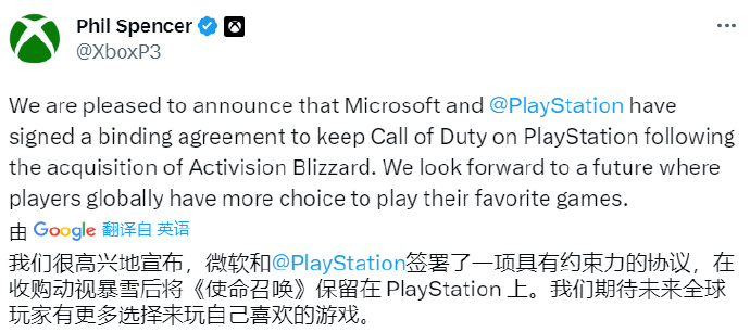 昨日,微软官方对不少玩家关心的《使命召唤》平台问题做出了表态。微软称已经与索尼达成了一项有约束力的协议,保证在微软完成收购后,《使命召唤》系列作品还能继续在PlayStation平台上保留。