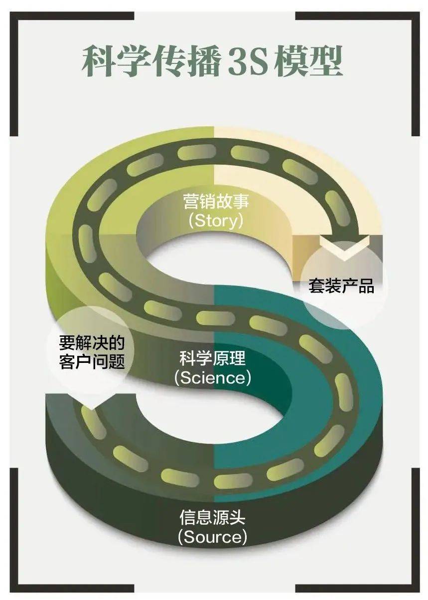 这个模型的形状就如同字母“S”,这意味着其中的信息源头、科学原理和营销故事是无缝衔接在一起的,从一点总能平滑地过渡到另一点。