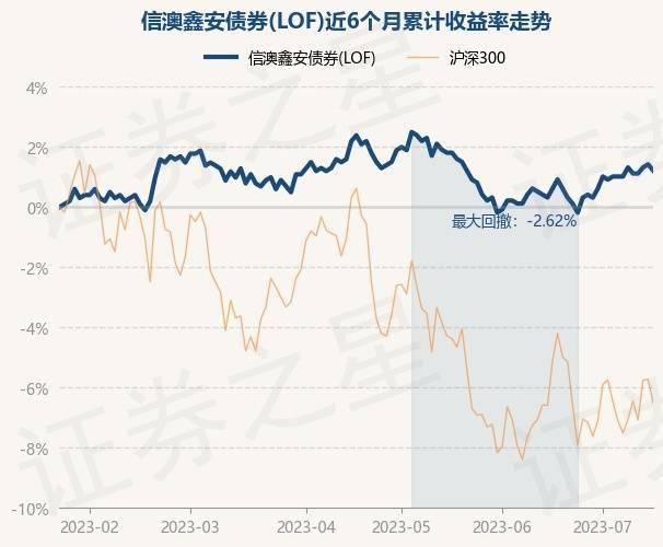 7月17日,信澳鑫安债券(LOF)最新单位净值为1.017元,累计净值为1.344元,较前一交易日下跌0.2%。历史数据显示该基金近1个月上涨0.3%,近3个月下跌0.97%,近6个月上涨1.19%,近1年上涨0.66%。该基金近6个月的累计收益率走势如下图: