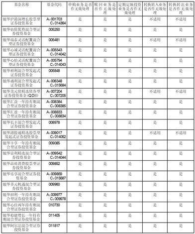 根据银华基金管理股份有限公司(以下简称“本基金管理人”)旗下部分基金基金合同和招募说明书的有关规定及投资运作情况,投资人在开放日办理基金份额的申购和赎回业务。鉴于2023年7月17日香港联合交易所因台风临时休市,本基金管理人决定对于投资者于2023年7月17日提交的下列基金申购、赎回、转换(如有)及定期定额投资业务申请,全部作无效处理,申购和定期定额投资款项将退回投资者账户。