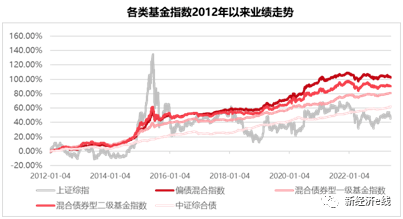 反观权益投资比例较高的万得偏股混合型基金指数、万得普通股票型基金指数、万得平衡混合型基金指数等,上述基金指数年初至今收益率均为负收益,分别为-3.03%、-1.50%、-1.43%。