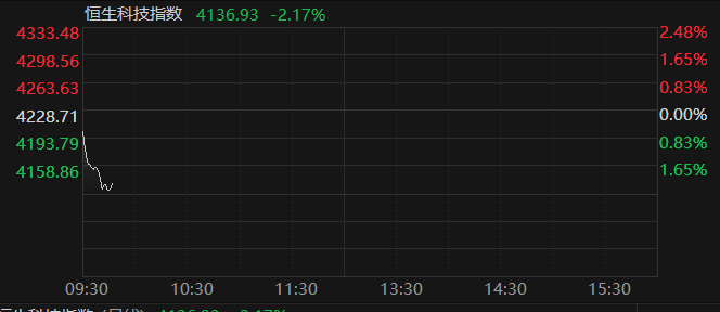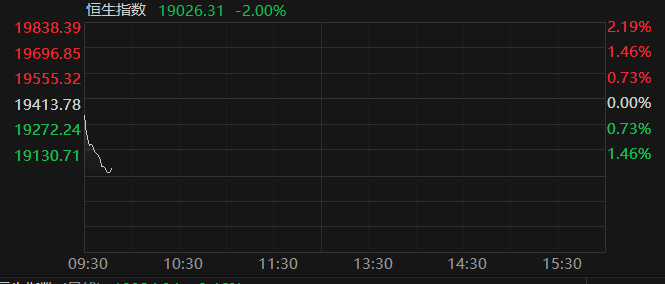 原标题:恒生指数跌幅扩大至2% 恒生科技指数跌超2%