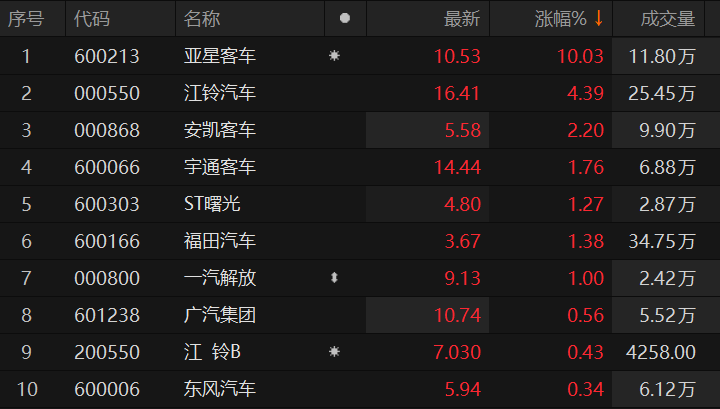 原标题:汽车整车股快速反弹 亚星客车涨停