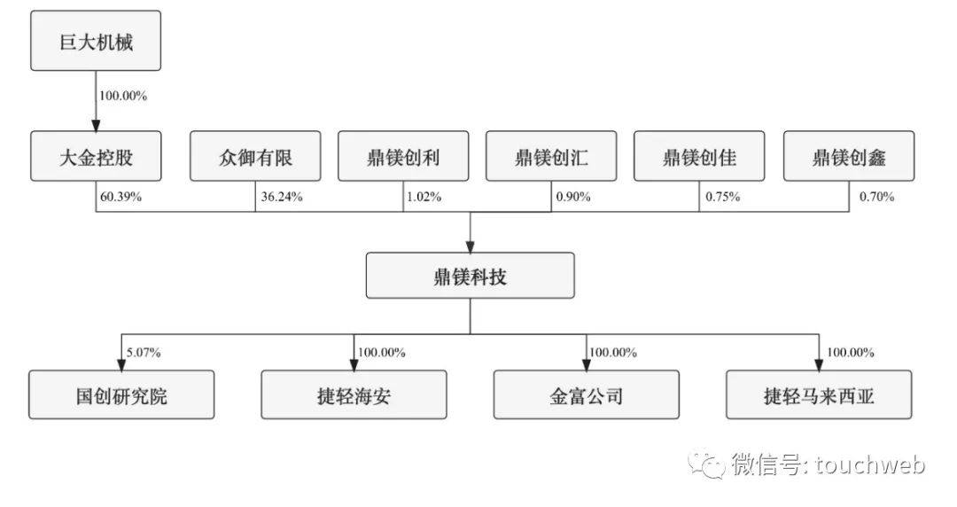 鼎镁科技直接控股股东为大金控股,直接持有公司21,741.75万股,占总股本的60.39%。