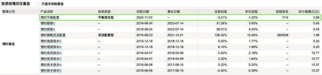 值得一提的是,博时平衡配置的另一名基金经理也是孙少锋。他自2020年11月3日接任,到目前任职回报-3.21%,年化回报-1.2%。在博时颐泰混合清盘之后,博时平衡配置也成为他目前唯一在管的基金。