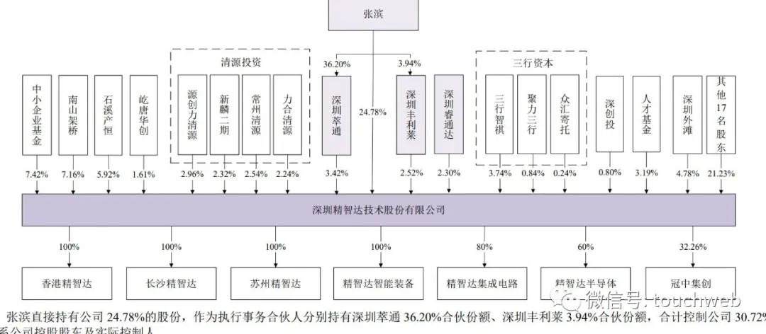 IPO前,张滨直接持有24.78%股份,并通过深圳萃通及深圳丰利莱间接控制公司5.94%股份,合计控制30.72%股份,为控股股东、实际控制人。