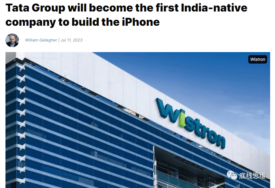 观察者网:近来有另一则新闻或许可以为您的想法提供佐证,那就是同是台企的纬创全面撤离印度,其位于印度卡纳塔克邦的苹果代工厂预计将在8月被印度塔塔集团收购,塔塔也将借此成为第一家在印度组装iPhone的印度公司。