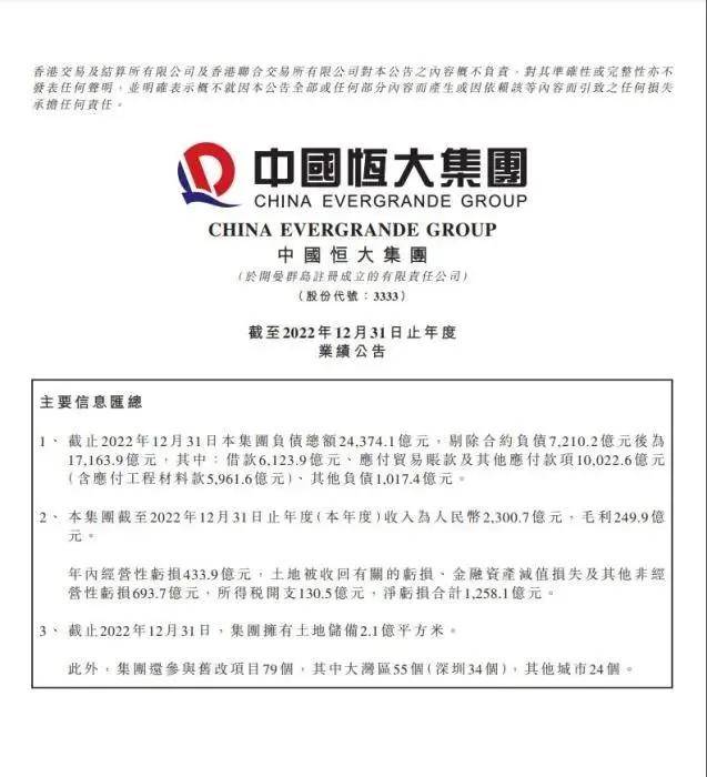 在距离除牌期限仅剩不到3个月时,已停牌近16个月的中国恒大于7月17日晚间接连补发了之前所有未能按时刊发的业绩报告,包括2021年业绩、2022年半年业绩以及2022年业绩。