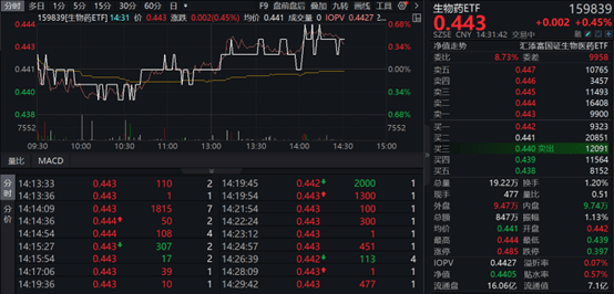 截至目前,生物药ETF(159839)上涨0.45%。