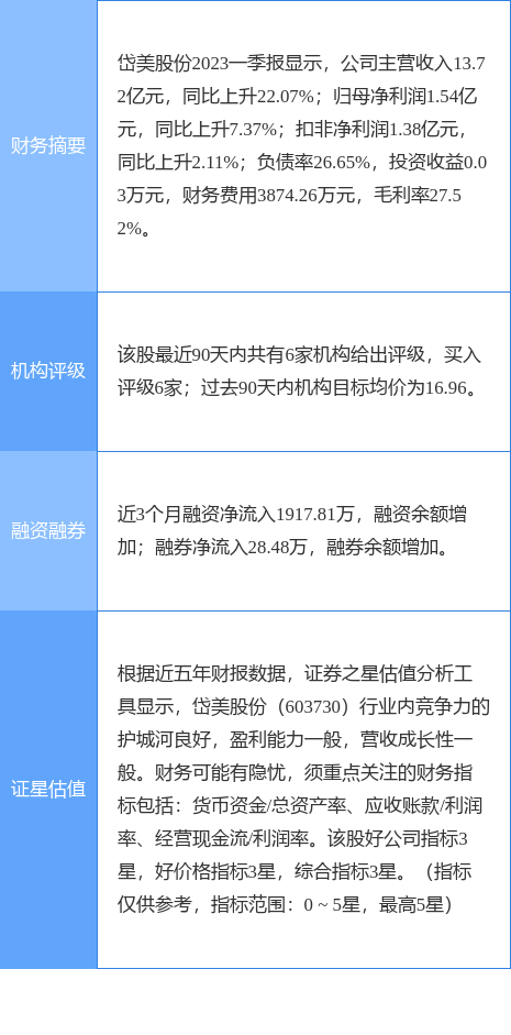 今日岱美股份(603730)涨8.29%,收盘报17.51元。