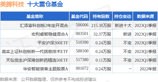 重仓美腾科技的公募基金请见下表: