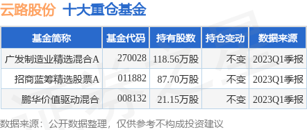 重仓云路股份的公募基金请见下表: