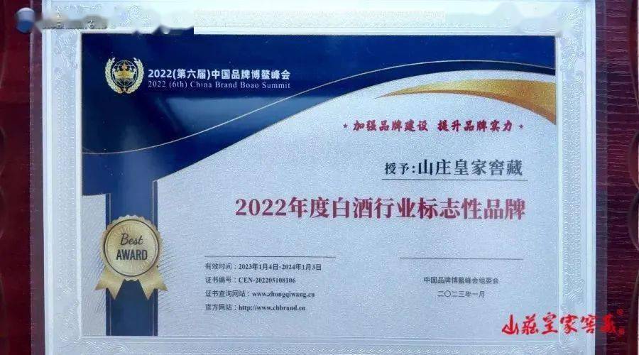 山庄皇家窖藏在博鳌荣耀之夜颁奖典礼上荣获2022年度白酒行业标志性品牌,山庄皇家窖藏被指定为本次大会专用酒,深受各级领导和国内外人士的一致肯定和欢迎。
